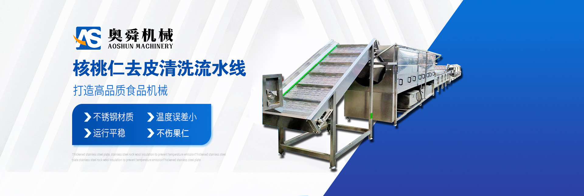 奧舜機械 【核桃仁去皮機】打破了核桃仁深加工過程中的困擾,純物理脫皮方法,專門針對核桃仁表皮的沖洗,代替了傳統(tǒng)的化學(xué)泡制去皮,使產(chǎn)品更安全放心,連續(xù)式工作,操作簡單,去皮率高、破損率低,自動化程度高,節(jié)省人工,可配套烘干箱使用。